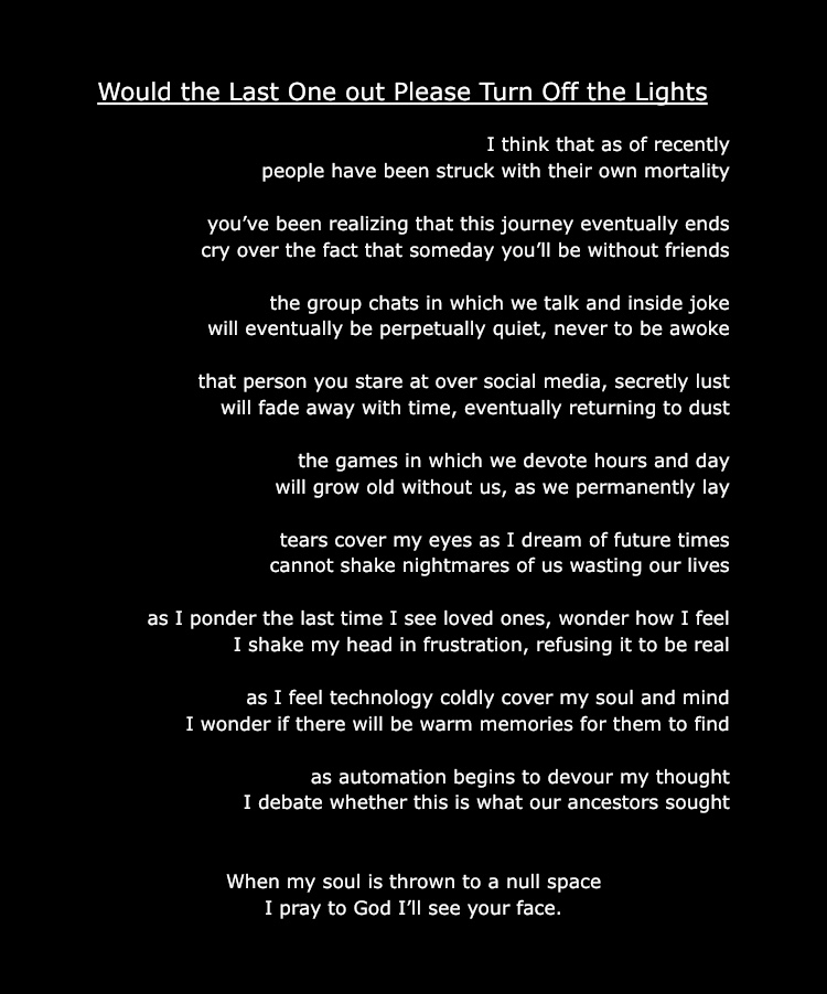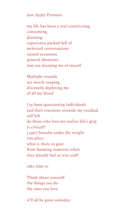 Hey there, as I write more and more, I’m going to be posting it all on here. I’m sorry to everyone on social media, that was the only place I saw fit to share for too long.
